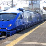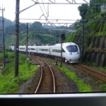 Alternating current (20kV /60Hz) trains for speeds up to 130 km/h. Designed in an unique light and dark grey livery. 140 carriages built 1992-2002 and widely used on intercity express services in all areas of Kyûshû, at first primarily on the through north-south connection over the Kagoshima Honsen down to Kagoshima. After the opening of the Kyûshû Shinkansen southern section (2004 Kagoshima to Shin Yatsushiro ) class 787 was displaced from southern Kyûshû and – apart several other services – became the "Relay Tsubame" (northern Kyûshû - Shin Yatsushiro). Today class 787 work to Nagasaki and Sasebo in the west, Kokura and Moji-kô in the northeast, from Fukuoka into the Ômuta and Kumamoto area, and since 2011 they are also employed in the south from Kagoshima up the Nippô Honsen to Miyazaki, Ôita and Nakatsu.