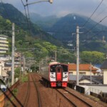 - Class 885, no. 5, car MOHA 885-105 in Yanagigawa south of Nakatsu on the Nippô Honsen. (2016)
