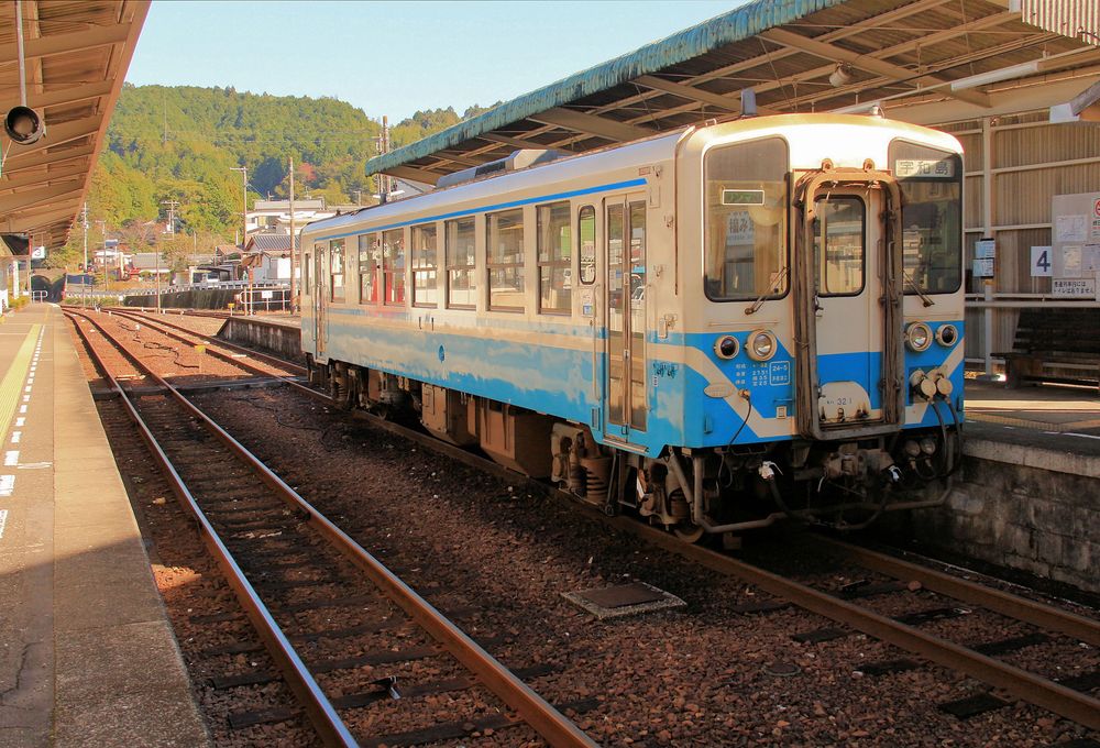 6346 KIHA 32 1 waiting at Kubokawa to depart up the Yodo-sen to Uwajima. (2017)