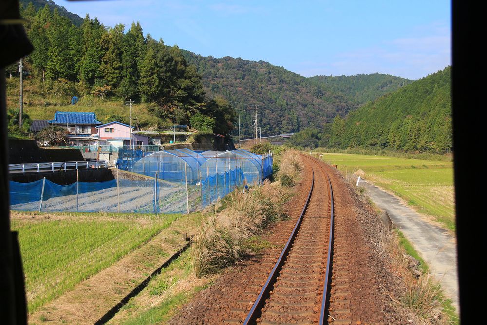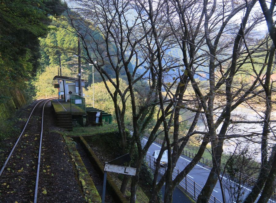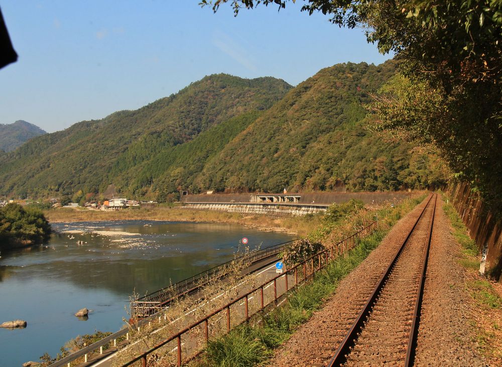 7282 The line along the Shimantogawa is relatively new, having been opened in 1974. The good state of the track contrasts with the line further north. Between Tosa Shôwa and Tôkawa. (2017)