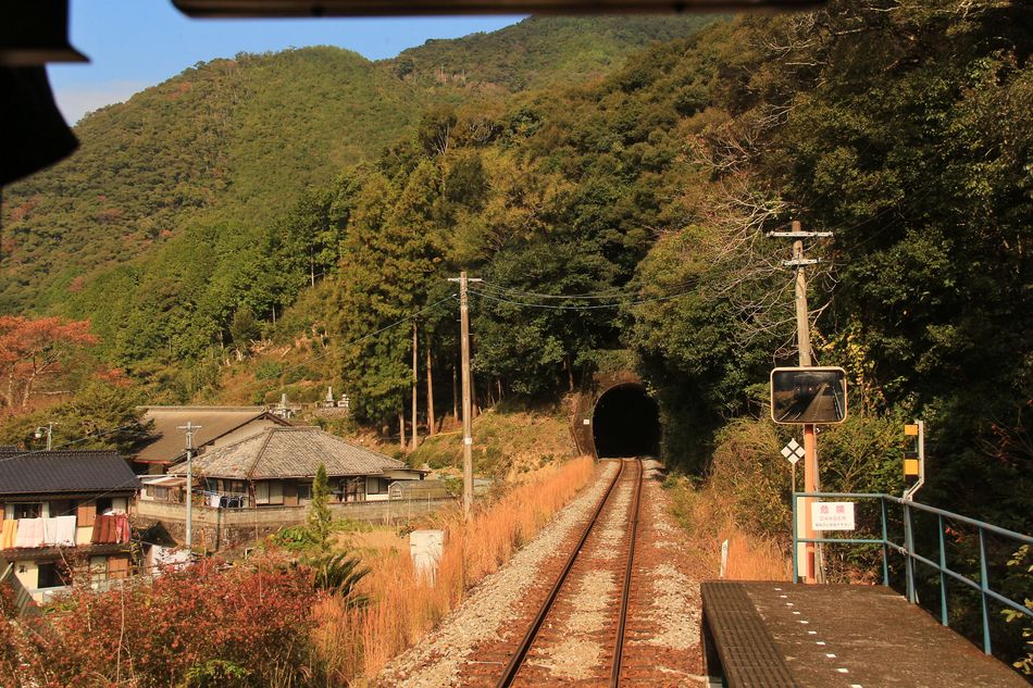 The new section from Ekawasaki onwards, completed in 1974, cuts more or less straight through the mountains, with the Shimantogawa emerging and disappearing as the train works its way in and out of the many tunnels. Traffic is only light and is dwindling steadily. There are 4 trains a day covering the whole line, with another 4 from Uwajima to Ekawasaki and one to Chikanaga.