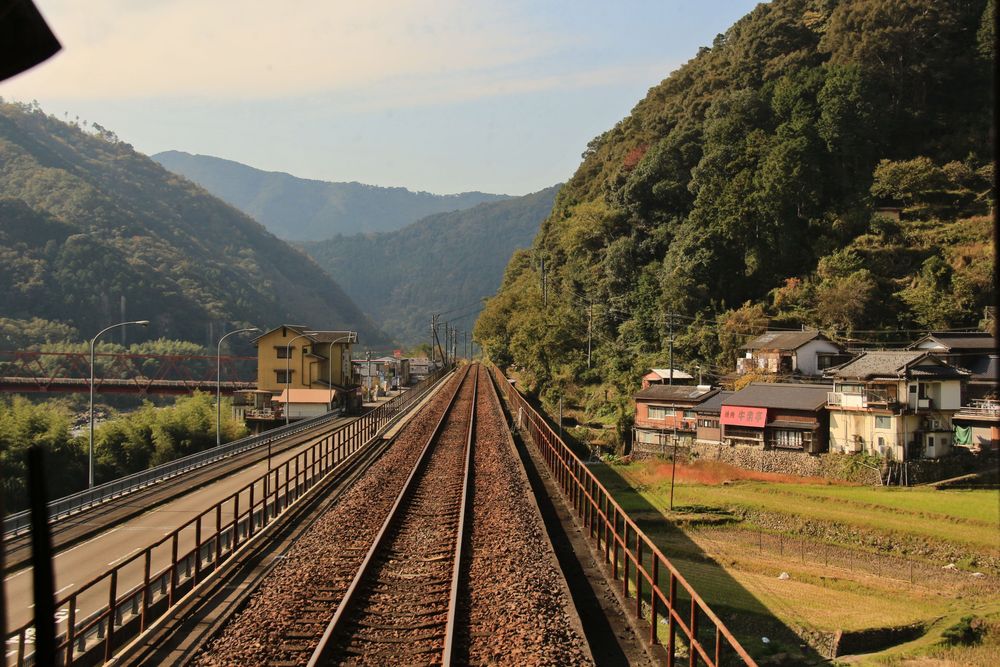 This line in the southwest of the island Shikoku is the only railway link between the prefectures of Ehime and Kôchi. It passes through spectacular scenery, first (coming from Uwajima) it follows the rivers Mitsumagawa and Hiromigawa. In the region of Ekawasaki the Hiromigawa joins the Shimantogawa, coming down from the mountains in the east and then turning south towards the sea at Nakamura, a station on the Tosa Kuroshio Tetsudô. From Ekawasaki onwards the Yodo-sen follows the Shimantogawa all the way up to Kubokawa. Nearing Kubokawa the last station of the Yodo-sen is Iejigawa, from where the train continues to the signal stop at Kawaoku. At Kawaoku trains off the Tosa Kuroshio Tetsudô enter the signal stop after emerging from the 360 degree loop tunnel. From here trains from both lines, the Tosa Kuroshio Tetsudô from Sukumo and Nakamura and the Yodo-sen from Uwajima, continue together to Waka-i and the end stop at Kubokawa.