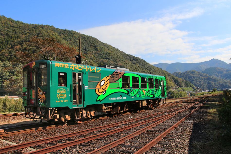 The Yodo-sen is known for its open truck (a former goods van) attached to the regular trains on certain weekends and giving visitors an impressive ride along the Shimantogawa between Ekawasaki and Tosa Taishô / Tosa Shôwa and Ekawasaki.
